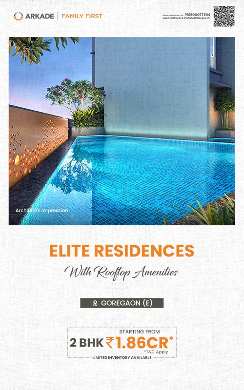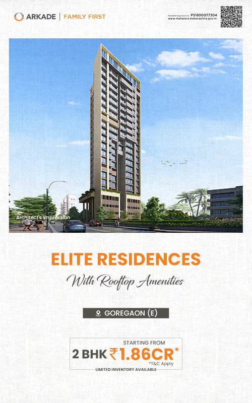 With excellent connectivity to Goregaon Station, Western Express Highway, and nearby malls, the project combines convenience with comfort. Arkade Views emphasizes creating homes where families can thrive, offering possession by December 2027.